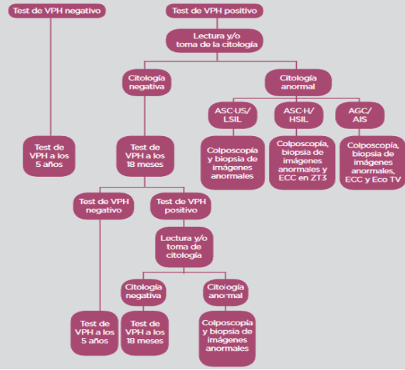 Resultado positivo, indica la presencia de HPV de alto riesgo oncogénico frente al cual se utilizará la citología como método de “triage”, es decir, para identificar aquellas mujeres con lesiones que necesitan ser diagnosticadas y tratadas.