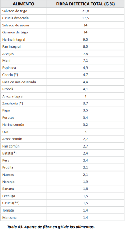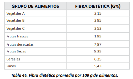 de mesa. Se considera que un alimento aporta poca cantidad de FD cuando tienen menos de 2 g de FD /100 g de alimento.