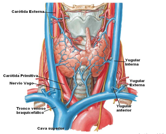 Anatómicamente la vena Yugular Interna abandona la base del cráneo, por medio del foramen yugular, esta a su vez se une a la vena subclavia, a nivel de la clavícula. Su diámetro aumenta a medida que va descendiendo.