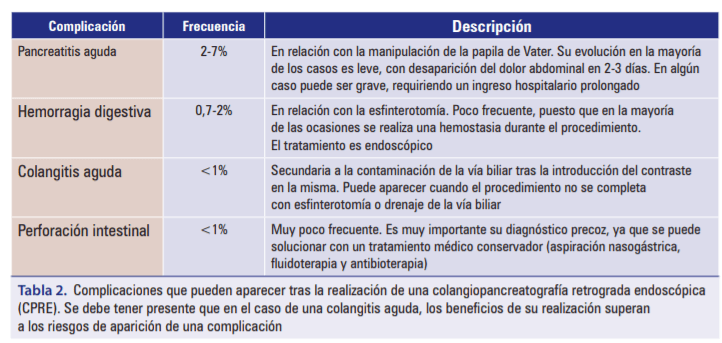 - Pancreatitis aguda: es un proceso infl amatorio agudo del páncreas desencadenado por la activación inapropiad de las enzimas pancreáticas, que ocasionan una lesión e infl amación del tejido pancreático. Es posible su aparició en el contexto de una colangitis aguda debido a que uno de los cálculos del conducto biliar puede migrar y obstrui el conducto pancreático a la altura de la papila de Vater, o bien por la manipulación de ésta durante los procedimientos instrumentales para realizar el drenaje biliar.