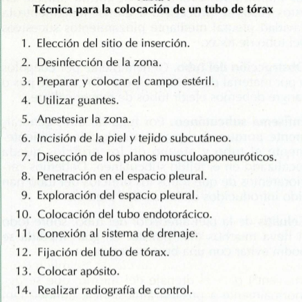 Los diámetros de los tubos de tórax y de las agujas varían con la edad del paciente y el tipo de colección a drenar.