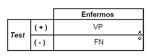 De todos los resultados que provienen de pacientes enfermos (VP y FN) la sensibilidad detecta a los que tienen resultados positivos (VP)