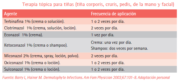 A su vez las tiñas se clasifican por el área del cuerpo que afectan, su frecuencia de presentación es la siguiente: